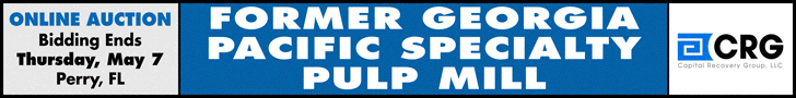 An online auction will be held on Thursday, May 7, 2026 for High End Stock Prep, Pulping, and Finishing Equipment from the former Georgia-Pacific Specialty Pulp Mill in Perry, Florida.